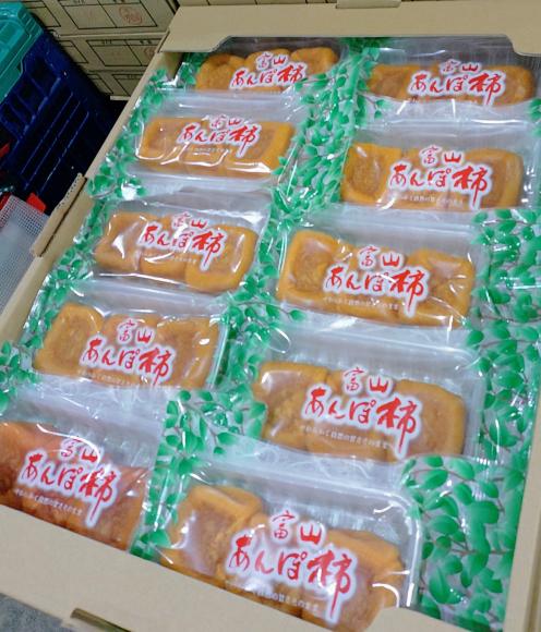 あんぽ柿の原料として使われるのは、主に「蜂屋柿(はちやかき)」と「平核無柿(ひらたねなしかき)」という渋柿です。どちらもひとつの実が大きく、中の種が小さいこと、水分が多く糖度が高いこと、鮮やかなオレンジ色の果肉とゼリー状のトロッとした食感が特徴です。